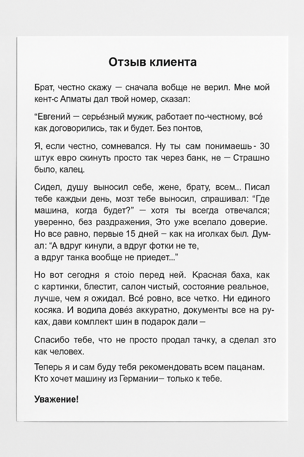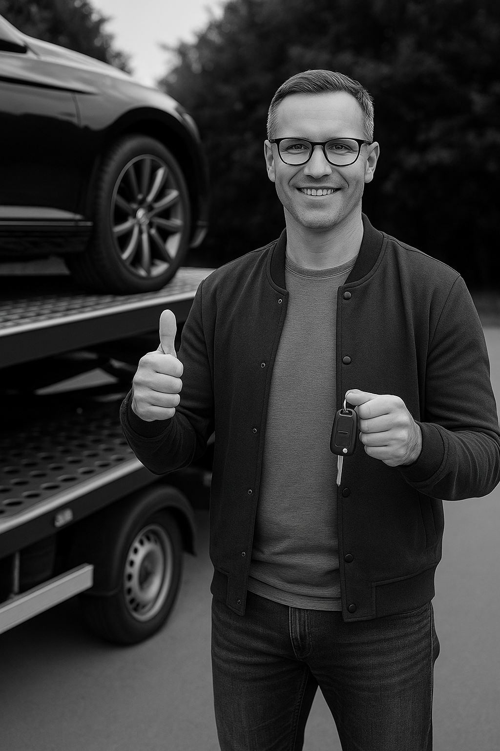 5. После согласования — оформляем все бумаги, проводим оплату залога (500 € остаётся нашей комиссией после сделки). Далее — подбор и покупка авто, регистрация, страховка, поддержка на всех этапах.